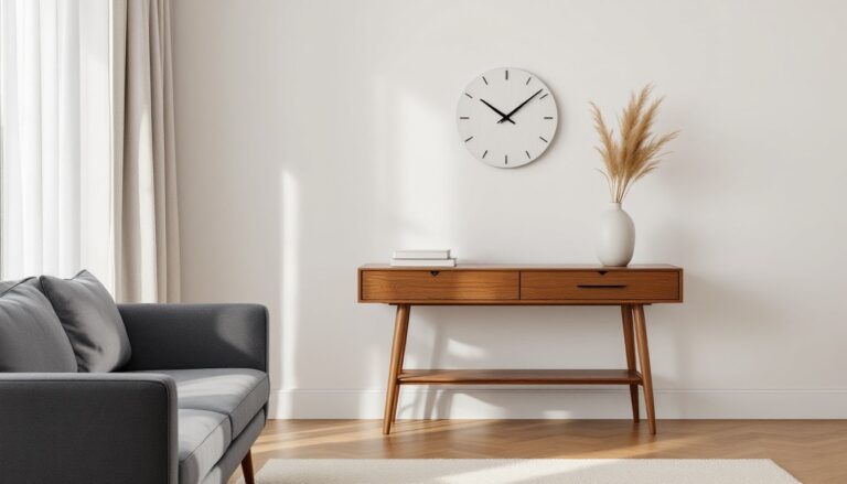 One design note: minimalist clocks often have low contrast between hands and face. That’s intentional for aesthetics, but it can make time-reading harder from across the room. If the clock’s primary job is function over form, choose models with defined numerals or high-contrast hands.